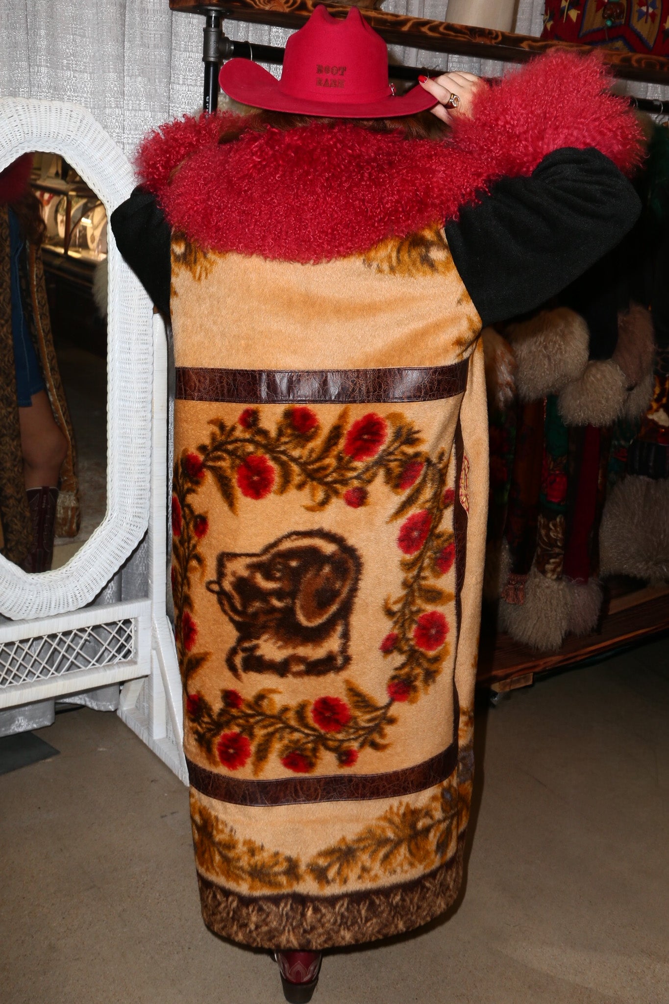 At Nomadic Reign Couture, each coat is a work of art. Our garments are not mass-produced but are individually handcrafted from rare antique buggy/sleigh blankets, and vintage tapestries—textiles that are often over a century old. Because every piece is unique, created with great time and care, they are considered final-sale items.
