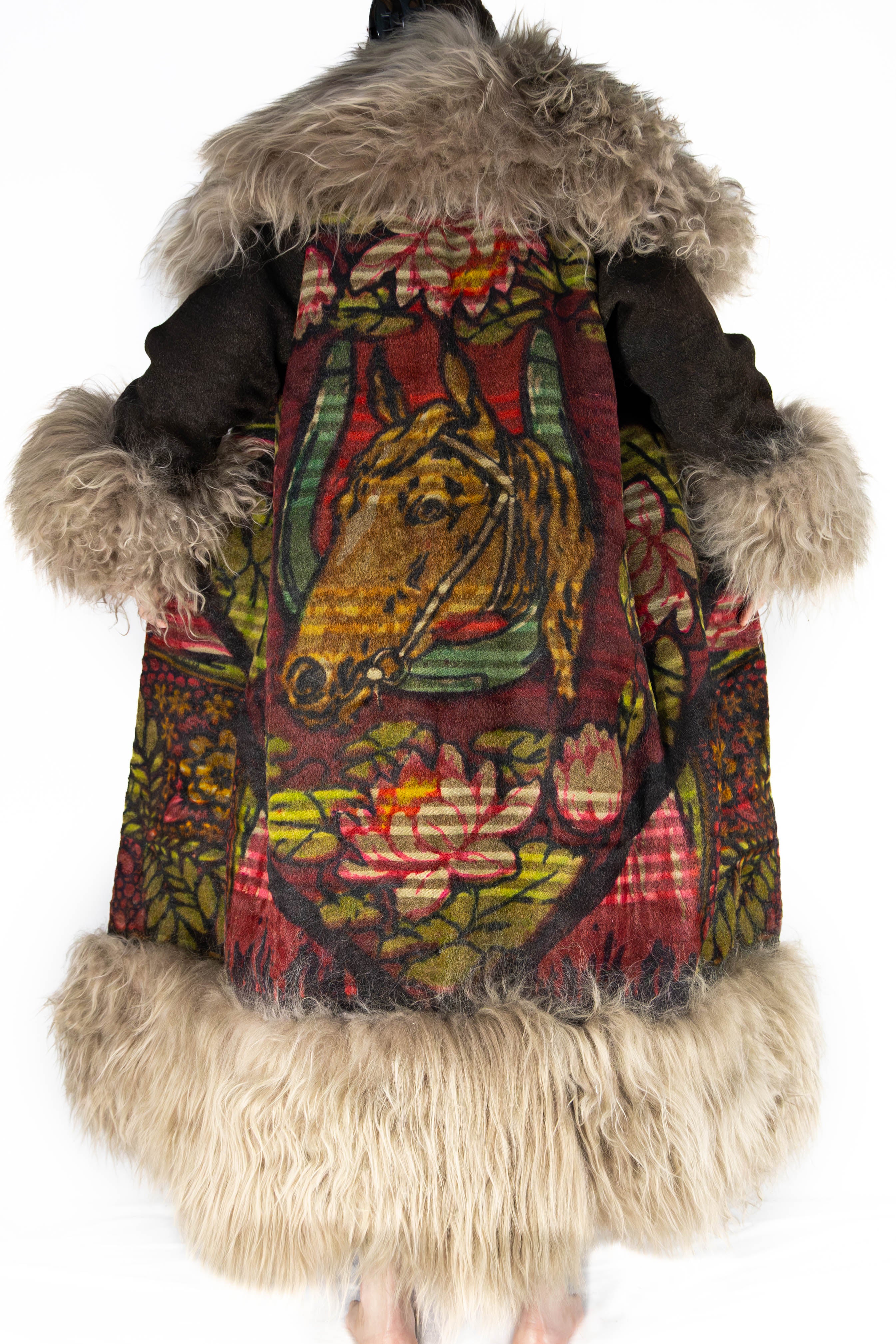 At Nomadic Reign Couture, each coat is a work of art. Our garments are not mass-produced but are individually handcrafted from rare antique buggy/sleigh blankets, and vintage tapestries—textiles that are often over a century old. Because every piece is unique, created with great time and care, they are considered final-sale items.