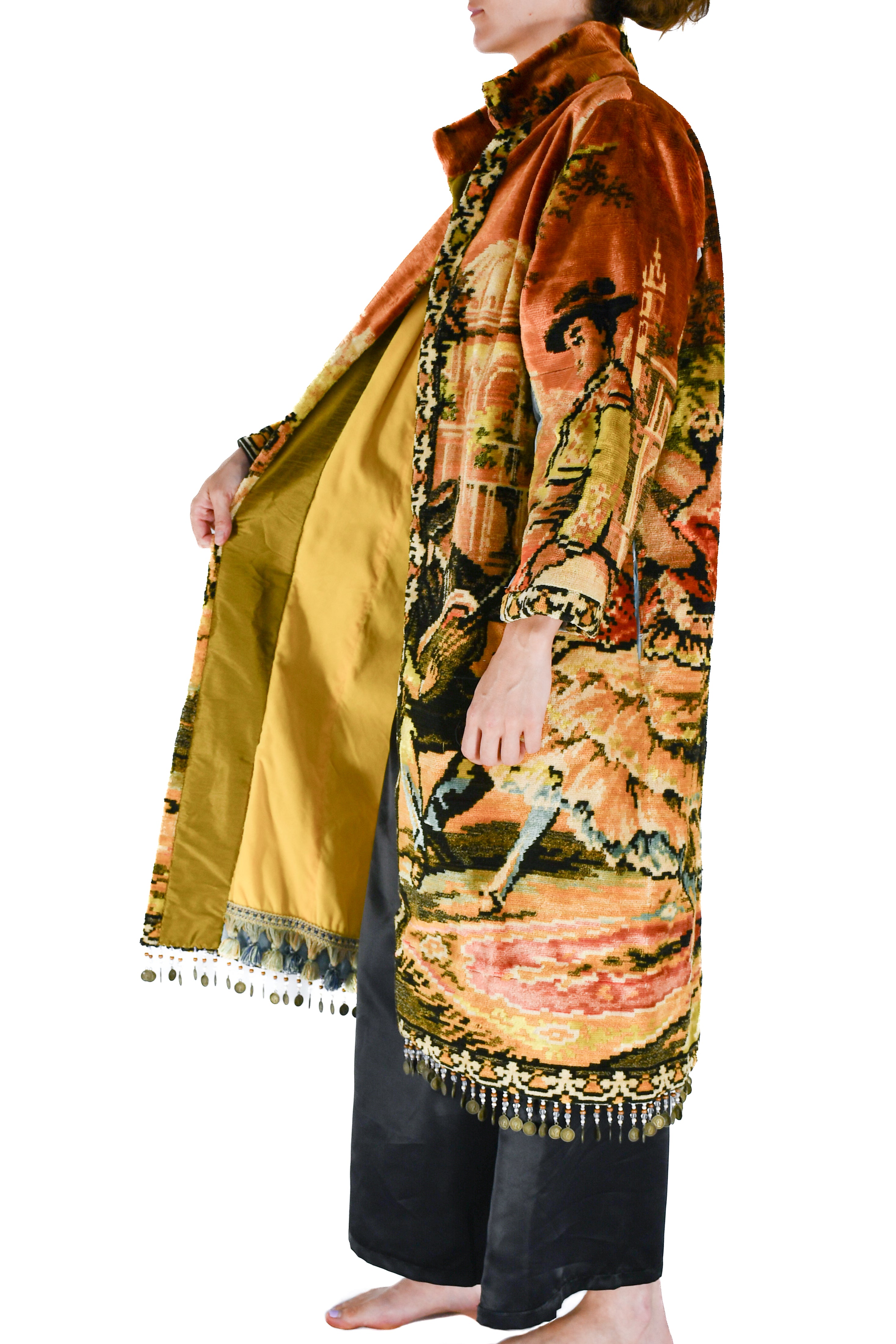 Matador — a one-of-a-kind creation by Nomadic Reign Couture, is a sweeping narrative in textile form, handcrafted from a vintage tapestry that evokes the warmth, drama, and elegance of the Spanish Mediterranean.