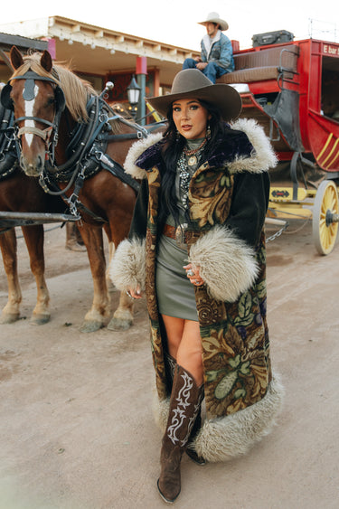 At Nomadic Reign Couture, each coat is a work of art. Our garments are not mass-produced but are individually handcrafted from rare antique buggy/sleigh blankets, and vintage tapestries—textiles that are often over a century old. Because every piece is unique, created with great time and care, they are considered final-sale items.